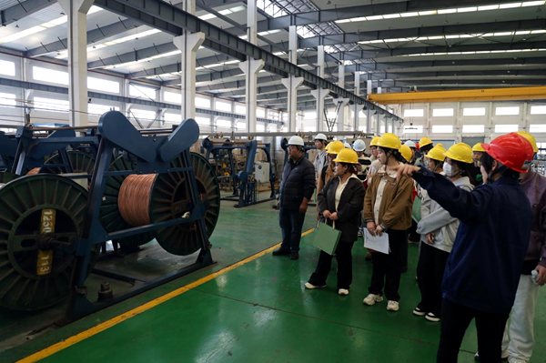 會前,與會人員一行參觀了企業(yè)展廳和特種電纜事業(yè)部。據(jù)悉,當天學(xué)校還組織了50名余學(xué)生赴通鼎集團參觀、面試。