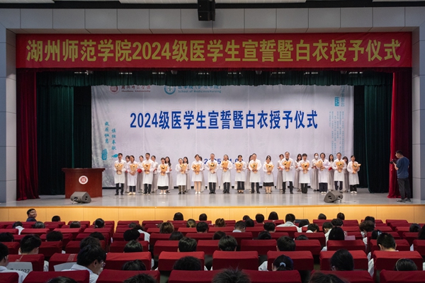 儀式上,姜菊表示,湖州師范學(xué)院醫(yī)學(xué)院(護(hù)理學(xué)院)是湖州的醫(yī)療衛(wèi)生人才高地,為湖州市的醫(yī)療衛(wèi)生事業(yè)發(fā)展作出了巨大貢獻(xiàn)。她勉勵(lì)2024級(jí)醫(yī)學(xué)生牢記習(xí)近平總書記的囑托,傳承好“明體達(dá)用”的校訓(xùn)精神,扎扎實(shí)實(shí)學(xué)知識(shí),兢兢業(yè)業(yè)練本領(lǐng),學(xué)有所得,成為一名優(yōu)秀而光榮的“健康守門人”。