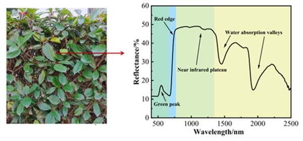 同色、同譜、耐候性等問題都在一定程度上受到光譜谷的影響。水谷的模擬通常基于植物的特征光譜,因為水通常被認為是影響植物葉片近紅外光譜響應的主要因素。近紅外波段中的吸收基團類型證實,1450nm左右的綠色植被吸收帶對應于-OH的第一諧波產生,1940nm左右的吸收帶歸屬于-OH的組合頻率。因此,有效的近紅外光譜模擬材料必須具有-OH的特征峰。