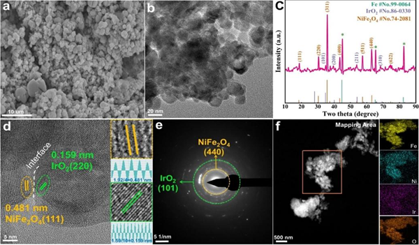 以上實驗結果驗證了NiFe2O4-IrO2/PFF突出的催化活性可歸因于以下幾個關鍵方面。首先,在DBD等離子體的輔助下,FF與催化劑之間的結合強度顯著增強,有利于電催化的穩定性。其次,NiFe2O4和IrO2之間的協同作用可以提供豐富的活性位點,提高其內在催化性能。最后,引入氧空位可以降低電荷轉移以提高電催化反應動力學。這項工作為開發高性能、低成本的過渡金屬基電催化電極材料提供了一種新方法新技術,具有較強的普適性。