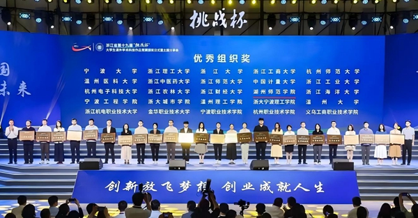 近日,由共青團浙江省委、浙江省教育廳、浙江省社會科學院、浙江省科學技術協會、浙江省學生聯合會主辦的浙江省第十九屆“挑戰杯”大學生課外學術科技作品競賽在浙江中醫藥大學落下帷幕。我校共獲得金獎4項、銀獎9項、銅獎14項,學校首獲優秀組織獎,主體賽金獎數量突破歷史新高。