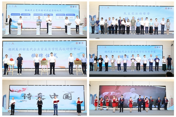現場舉辦了民主黨派“同心詩會”、民主黨派結對共建簽約儀式、民主黨派成員傳幫帶結對儀式,新生代企業家成長學院高校研修中心揭牌儀式、新生代企業家成長計劃發布儀式、新生代企業家成長學院智庫專家聘任儀式,來自吳興和三所高校的民主黨派成員代表獻上了精彩的詩歌朗誦節目。