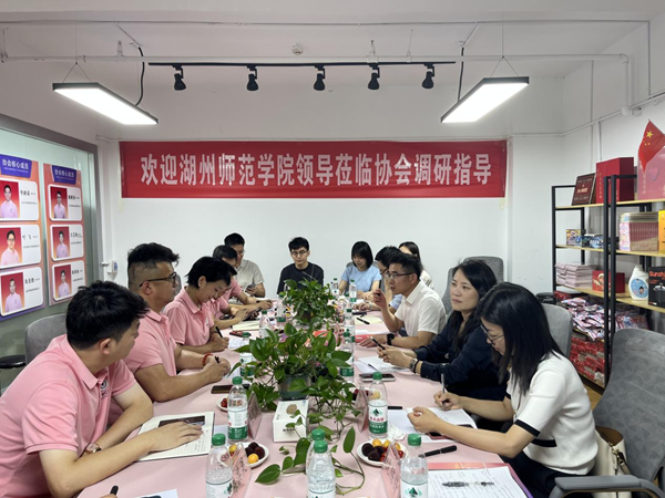 在義烏市工藝禮品行業協會,調研團一行和校友代表交流座談。協會常務會長、我校校友王賢君深情回顧了在母校的學習經歷,介紹了行業發展現狀,期待能為母校的合作注入新動力。執行會長虞樟勇介紹了協會的規模、未來發展規劃、會員企業海外布局情況。丁敢真代表學校向校友們表達了親切問候,介紹了湖州的地域人文優勢以及學校在學科建設、人才培養等方面取得的新進展,希望進一步加強校地合作與校友聯絡。新生代企業家代表和校友代表踴躍發言,交流了各自發展情況。