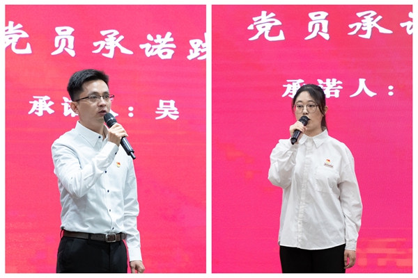 理學院應用物理系教師黨員吳璠、教育學院心理學專業學生黨員陸熹代表師生黨員分別作出鄭重承諾。