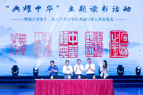 王建華宣布浙江省第十三屆大學生中華經典誦寫講大賽啟動。