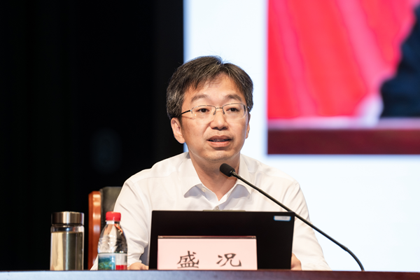 副校長(主持行政日常工作)盛況作了題為《生態重構拓新局 數智賦能譜新篇 以高質量人才培養體系支撐高水平師范大學建設》的專題報告。他從生態重構、內涵解析、現實困局、破解路徑四個方面,分析了學校高質量人才培養體系建設的現狀和方向。