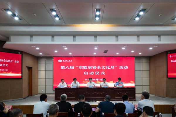 盛況致辭并宣布第六屆“實驗室安全文化月”開幕。他充分肯定了近年來學校在實驗室安全工作中取得的成效,并就進一步加強實驗室安全管理提出四點要求:一是提高站位,做安全意識的“覺醒者”。各單位要嚴格落實“黨政同責、一崗雙責”,切實做到守土有責、守土盡責。按照實驗室安全“分級分類”管理要求,抓源頭、抓關鍵、抓瓶頸,掌握防范化解風險的主動權。二是夯實責任,做安全規范的“踐行者”。嚴格落實三級責任鏈條,全面推行“網格化”管理機制,對問題隱患做到立即改、徹底改、系統改,確保整改出成效、成標準,實現安全隱患整改率100%。三是文化浸潤,做安全理念的“傳承者”。加強實驗室安全教育與培訓,推動實驗室安全文化融入校園文化整體建設。引導師生從“要我安全”轉向“我要安全”“我會安全”“我能安全”,營造人人重視安全的濃厚文化氛圍。四是協同聯動,做安全防線的“共建者”。各二級學院與職能部門要打破信息壁壘,構建高效協同機制。完善“四查”安全檢查體系,嚴格落實整改措施、責任、資金、時限、預案“五到位”,實現“隱患動態清零”。