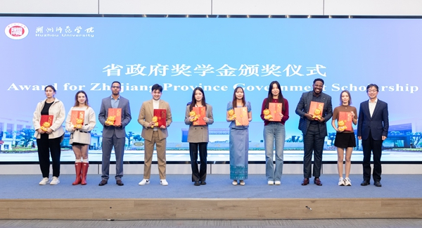 典禮現(xiàn)場舉行了浙江省政府來華留學(xué)生獎學(xué)金頒獎儀式。校領(lǐng)導(dǎo)為2024-2025學(xué)年獲獎的18名優(yōu)秀國際學(xué)生頒獎,表彰他們在學(xué)術(shù)研究、跨文化交流等方面的突出表現(xiàn)。