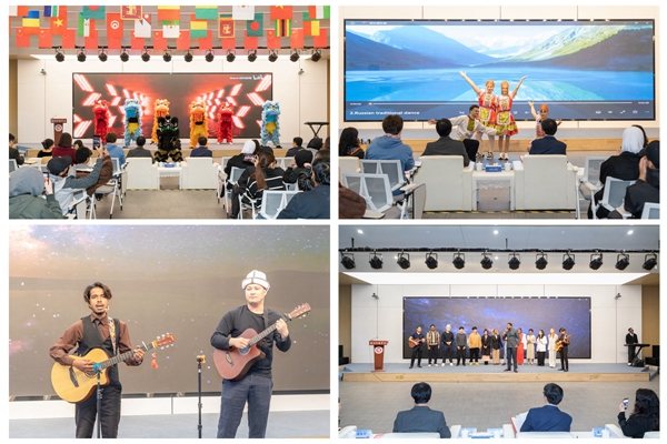 典禮在莊嚴的中外國歌聲中拉開序幕,五星紅旗與各國國旗交相輝映,象征著多元文明的相遇與共生。作為本次活動的一大亮點,第六屆國際文化節(jié)開幕式同步啟動,來自不同國家的留學(xué)生代表身著傳統(tǒng)服飾帶來了精彩的節(jié)目。