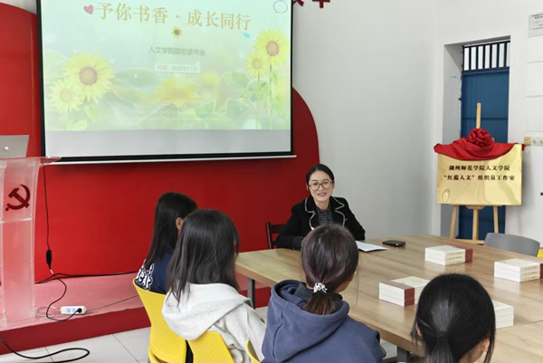 為營造良好學(xué)風(fēng),加強(qiáng)對學(xué)生的思想引領(lǐng)與人文關(guān)懷,11月7日,人文學(xué)院面向新生舉辦“予你書香 成長同行”勵志讀書會。學(xué)院黨委副書記譚珊、輔導(dǎo)員吳非凡與二十余名學(xué)生共同參與。