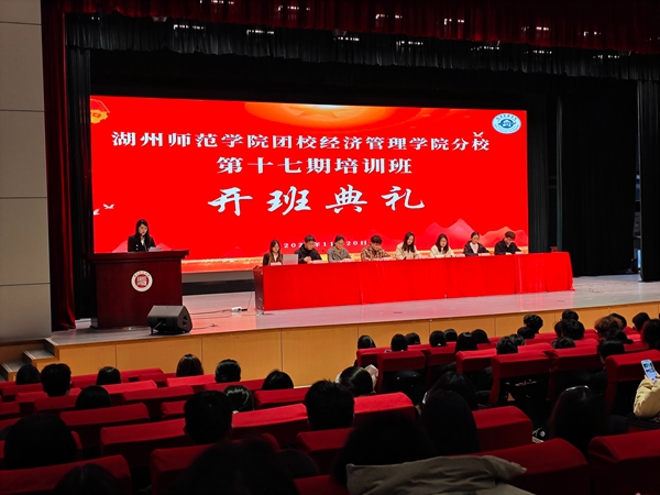 為進一步加強共青團思想建設,提高團員骨干的政治素質與理論修養 ,11月20日晚,經濟管理學院第十七期團校開班典禮在大學生活動中心舉行。經濟管理學院黨委副書記周穎,學工辦副主任、團委書記沈佳艷,全體輔導員及學院近300名團校學員和團干部共同參加開班儀式。