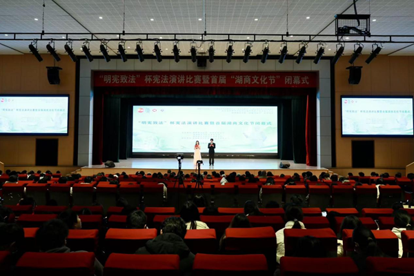為深入學(xué)習(xí)宣傳貫徹習(xí)近平法治思想,傳承湖商“誠(chéng)信務(wù)實(shí)、經(jīng)世濟(jì)民”文化基因,12月8日晚,“明憲致法”杯憲法演講比賽暨首屆湖商文化節(jié)閉幕式順利舉行。本次活動(dòng)由湖州市司法局、市普法辦、校黨委宣傳部與經(jīng)濟(jì)管理學(xué)院聯(lián)合主辦,校大學(xué)生法律援助中心承辦。湖州市司法局黨委書記、局長(zhǎng)吳宇昕,校黨委委員、宣傳部部長(zhǎng)朱小芳,經(jīng)濟(jì)管理學(xué)院領(lǐng)導(dǎo)班子出席本次活動(dòng)。400 余名師生齊聚一堂,共赴法治與文化的青春之約。
